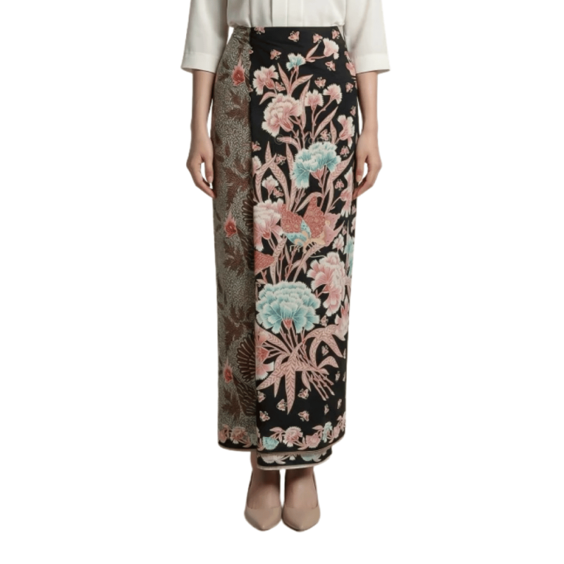 Peacock Premium Cotton Batik Sarong – Black Floral