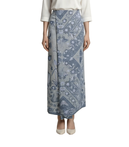 Premium Cotton Batik Fine Fall Wrap Sarong – Indigo White Classic Floral