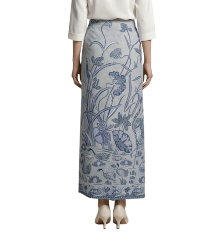 LotusGarden Harmony Premium Cotton Batik Fabric Sarong – Blue Porcelain Bloom