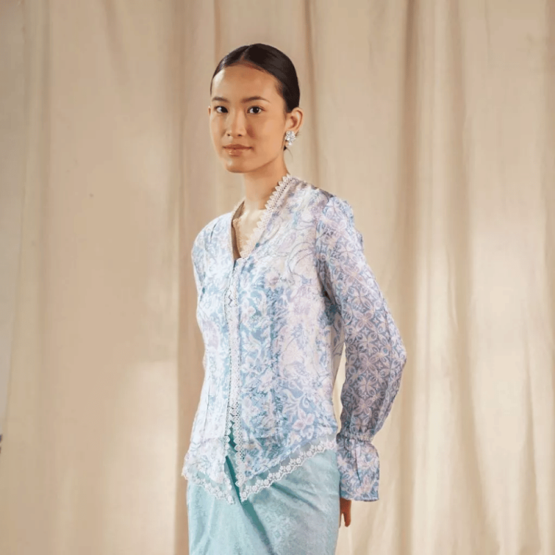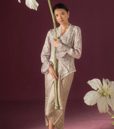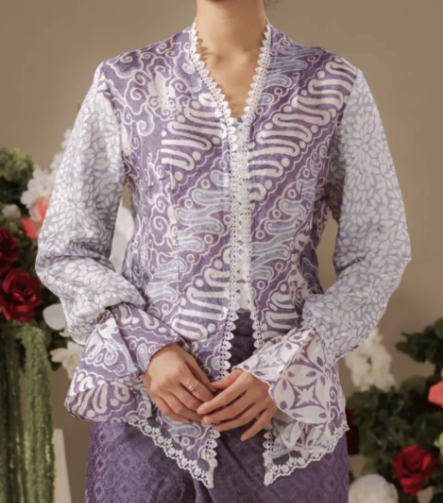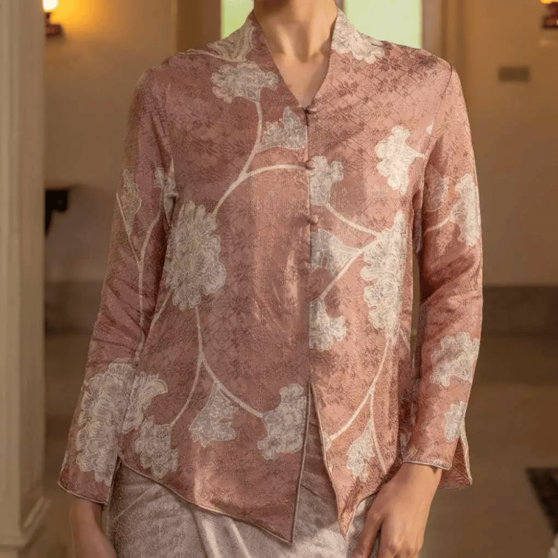 Lace Trim Batik Kebaya Top – Dusty Rose