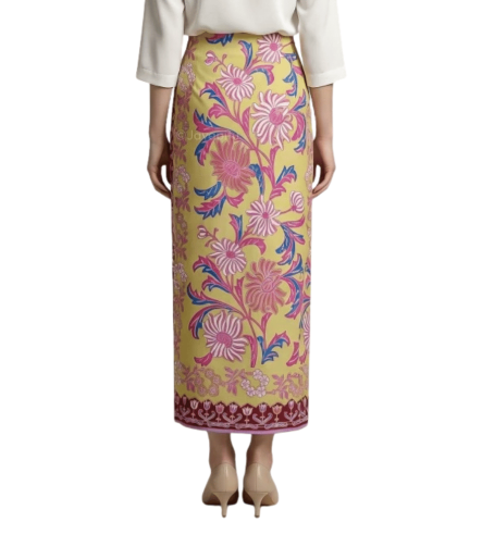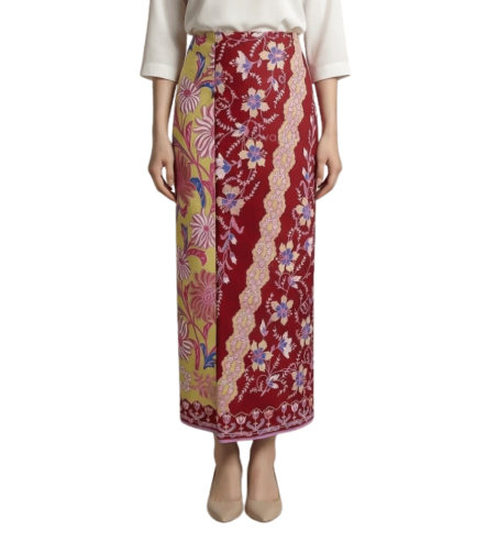 Premium Cotton Batik Fine Fall Wrap Sarong – Maroon Yellow Garden Bloom