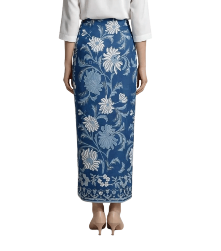 Premium Cotton Batik Fine Fall Wrap Sarong – Indigo White Classic Floral