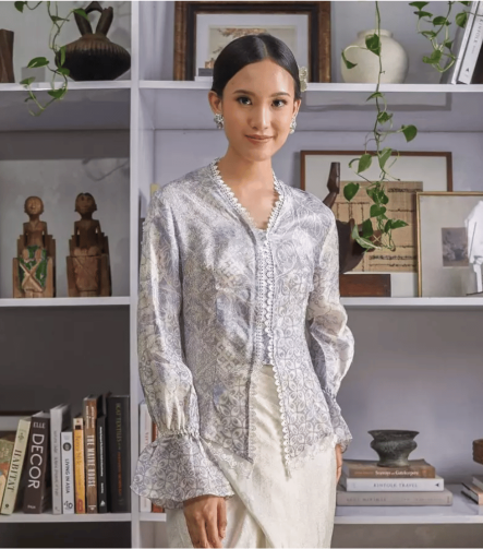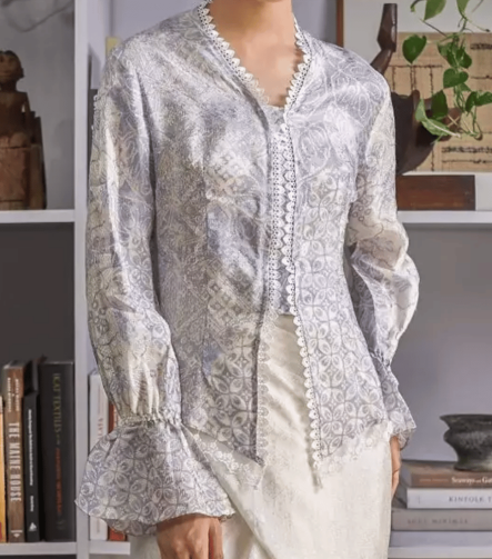 Lace Trim Batik Kebaya Top – Grey
