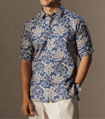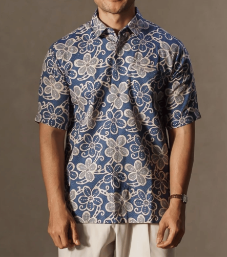 Men Basketweave Batik Short Sleeve Shirt