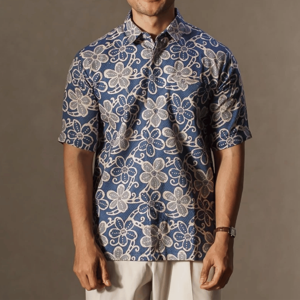 Men Floral Batik Short Sleeve Shirt