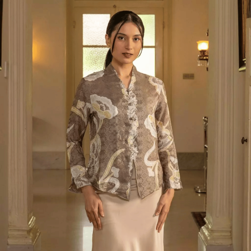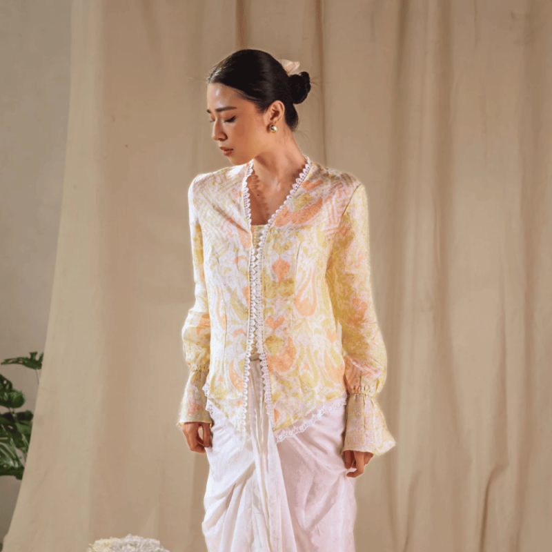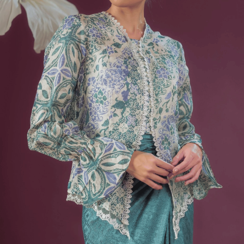 A timeless batik kebaya-inspired top with long sleeves and a clean neckline for a polished look. Easy to match with skirt, palazzo or jeans. Comfortable for work, dinners, and festive gatherings. Care: gentle wash, wash separately, cool iron. Fit: regular, choose your usual size.